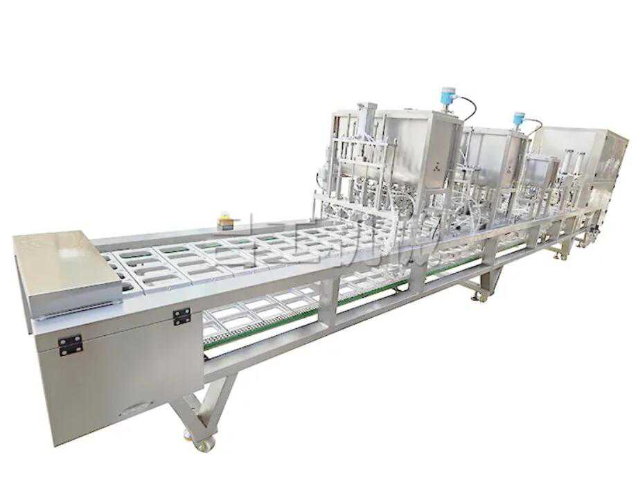本機(jī)采用合理的機(jī)械傳動,功能齊全,灌裝、封口、切邊、制品推出,廢料收卷,印碼等自動化工作,可節(jié)約人力,降低成本。本機(jī)有二次熱封裝置,料杯/碗/盒與封膜經(jīng)過前后二次熱封,封口牢固可靠。