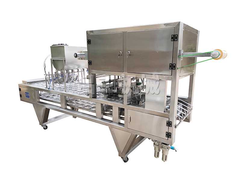 本機(jī)采用合理的機(jī)械傳動(dòng),功能齊全,灌裝、封口、切邊、制品推出,廢料收卷,印碼等自動(dòng)化工作,可節(jié)約人力,降低成本。本機(jī)有二次熱封裝置,料杯/碗/盒與封膜經(jīng)過前后二次熱封,封口牢固可靠。